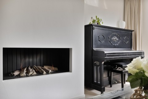 De gehele begane grond is voorzien van een lichte granieten vloer met vloerverwarming en strak afgewerkte wanden en plafonds.