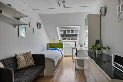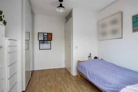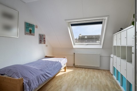 De tweede, ruime slaapkamer 2, ook aan de voorzijde, beschikt over een groot Velux dakvenster.