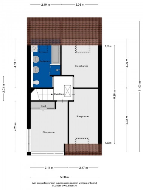 De derde, ruime slaapkamer 3 aan de achterzijde is eveneens voorzien van een groot Velux dakvenster.
